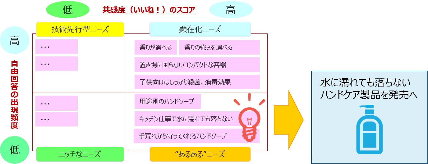 事例・実績化粧品メーカーA社製造業 Home 事例・実績一覧 化粧品メーカーA社 自社特性を活用した新市場への参入を検討をリサーチ 2022.09.27 リサーチ 企業名 化粧品メーカーA社 業種 製造業 なぜMSS? 激化する化粧品業界の中で、自社特性を活用した新市場への参入を検討。リサーチを支援している会社を探していた。 リサーチを行った背景 激化する化粧品業界の中で、自社特性を活用した新市場への参入を検討 想定商品 キッチン回りでの保湿効果製品 リサーチの目的 自社が保有する肌の保湿効果を生かすために、生活者ニーズを確認したい。 自社が未参入のカテゴリーのため、社内での仮説は多くあるが、どれが有効か不明。そのため生活者目線での新たな切り口や社内仮説の整理を行いたい。 リサーチの対象者 30~49歳までの既婚女性 リサーチ結果の活用イメージ